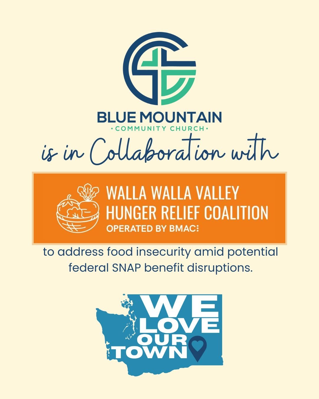 You can be part of the difference! We’re collecting donations of food and funds to support local families in need. Not sure what to bring? Check out the list below for the most-needed shelf-stable items. Just box or bag your donations (no sorting needed!) and drop them off at Blue Mountain Community Church, 928 Sturm, before Sunday service that starts at 10am or Monday–Thursday, 9:30 AM–3:30 PM. Need another time? Call 509.529.1212 to schedule a drop-off!